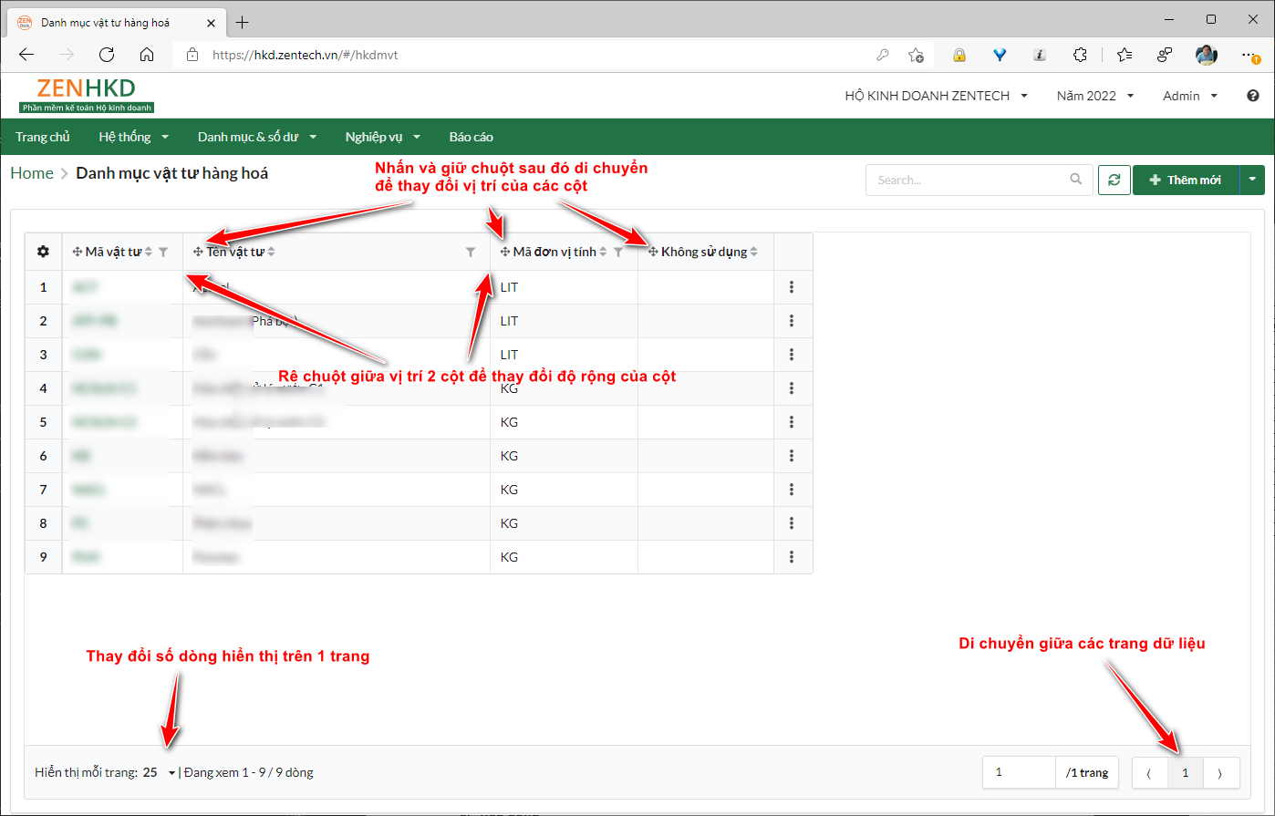 Trong phần này, chúng tôi sẽ hướng dẫn các thao tác chung trên các bảng dữ liệu của phần mềm ZEN HKD.
