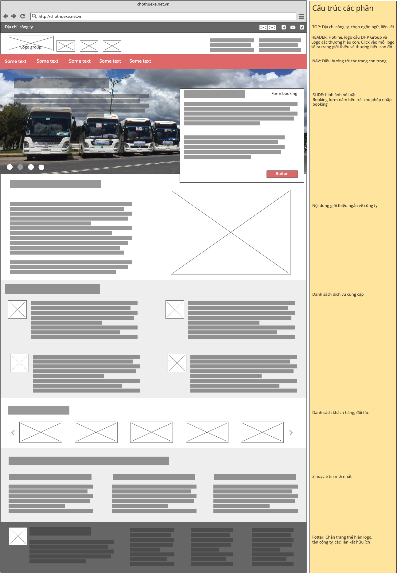 Ví dụ dưới đây là wireframe cho website của khách hàng